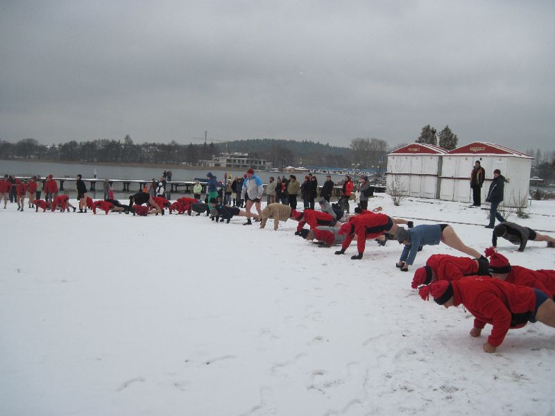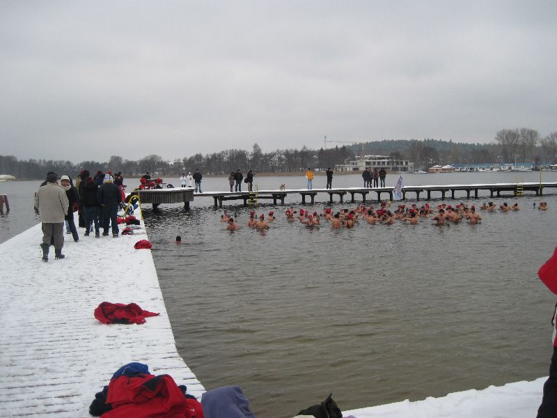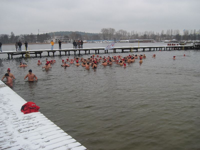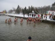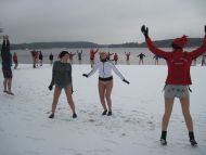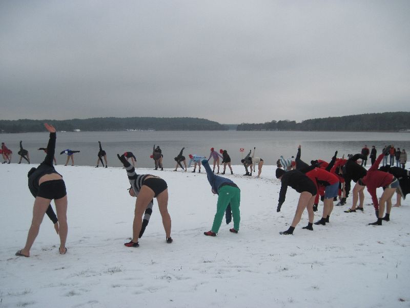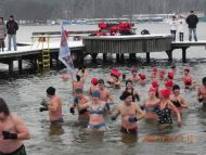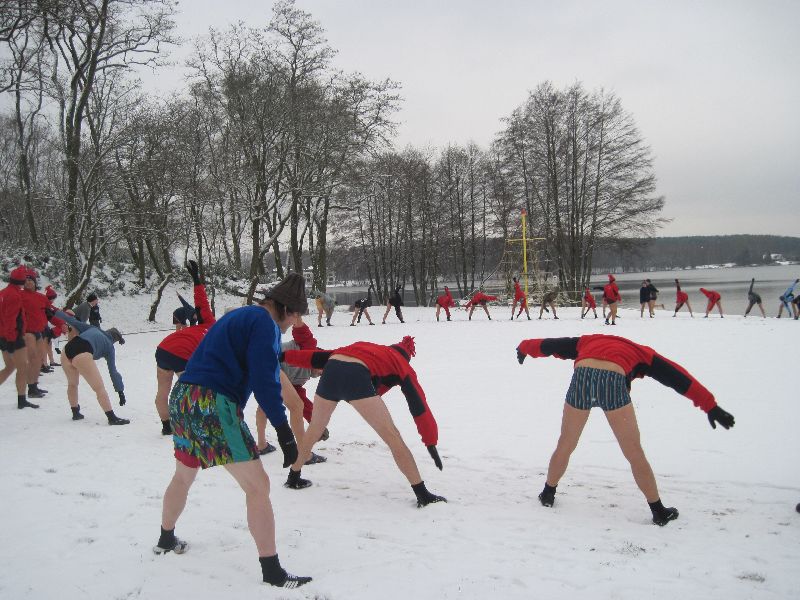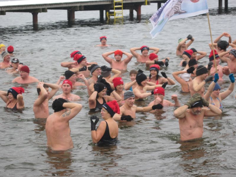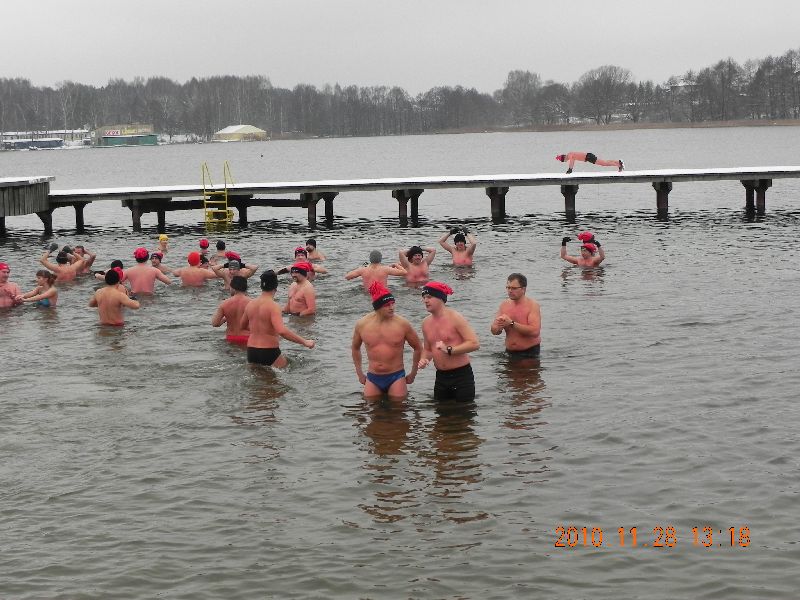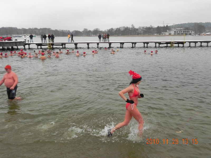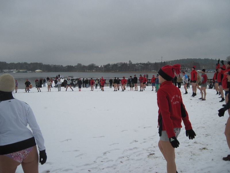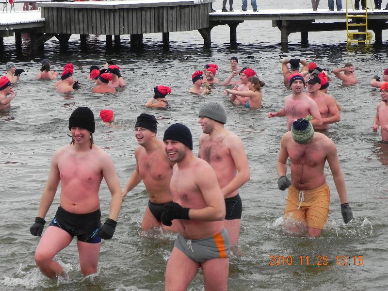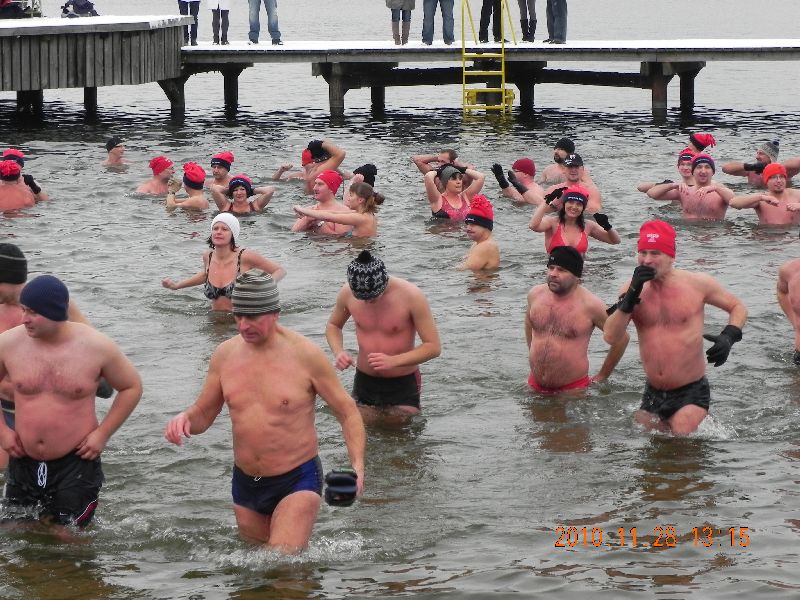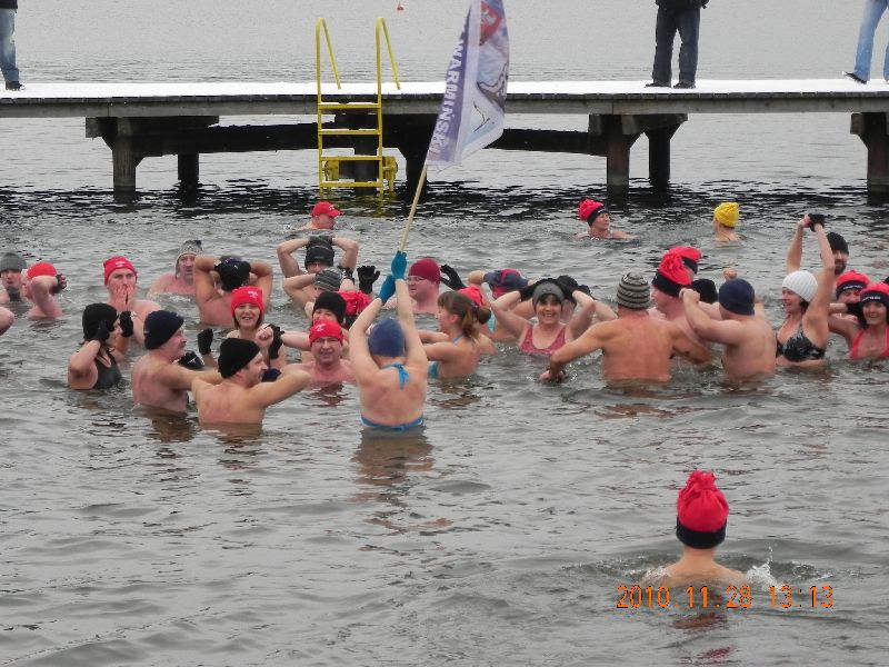 28-11-2010 - Pierwszy śnieg na Plaży Miejskiej, ale zima nam nie straszna, ponad 70 osób kąpiących się. Dziękujemy morsom z Lidzbarka Warmińskiego za odwiedziny i wspólną kąpiel.