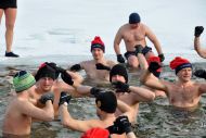 13-02-2011 - Dużą część Olsztyńskich Morsów w Mielnie, a reszta dzielnie kąpie się na Plaży Miejskiej.