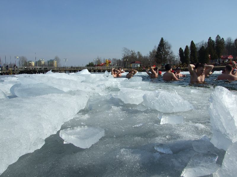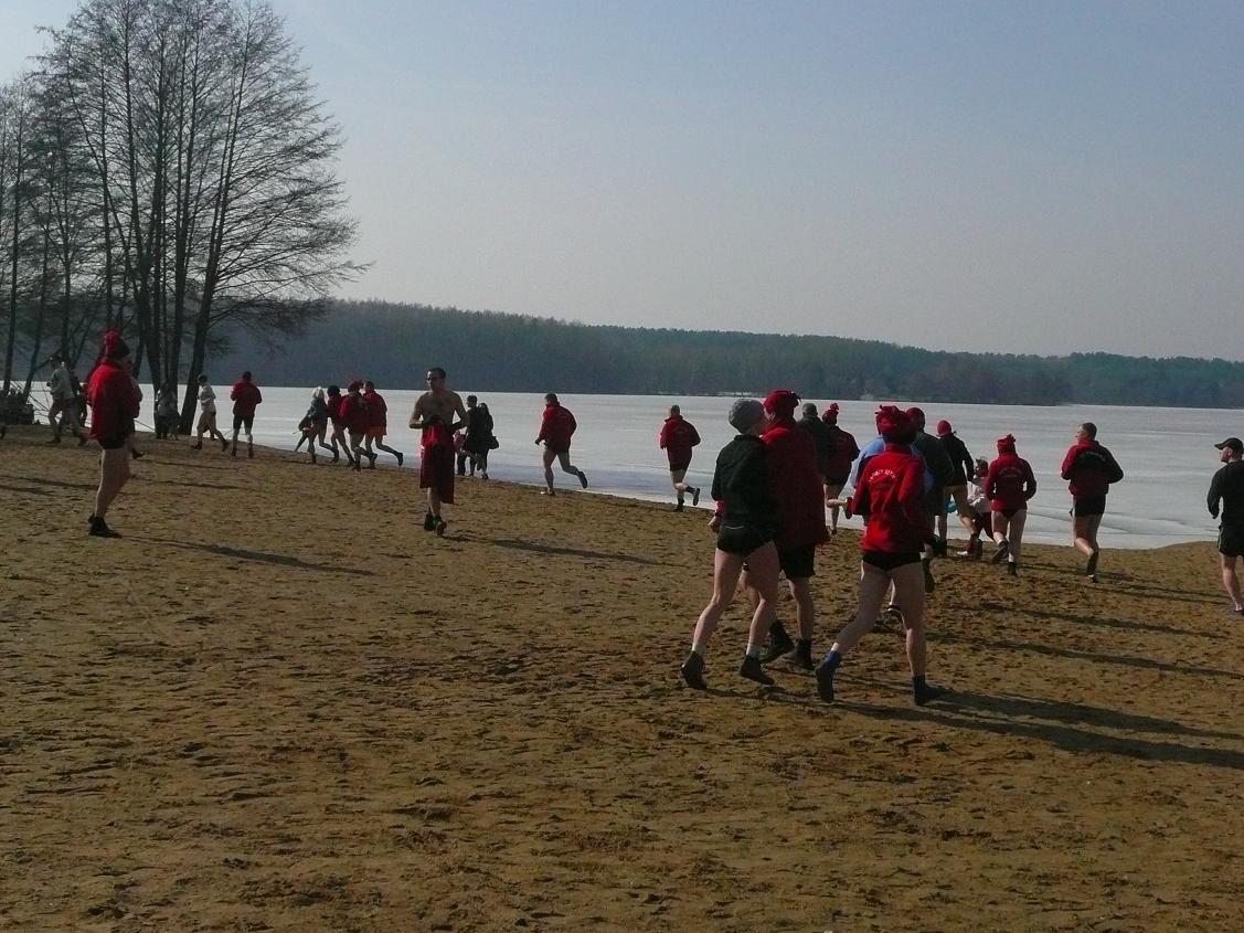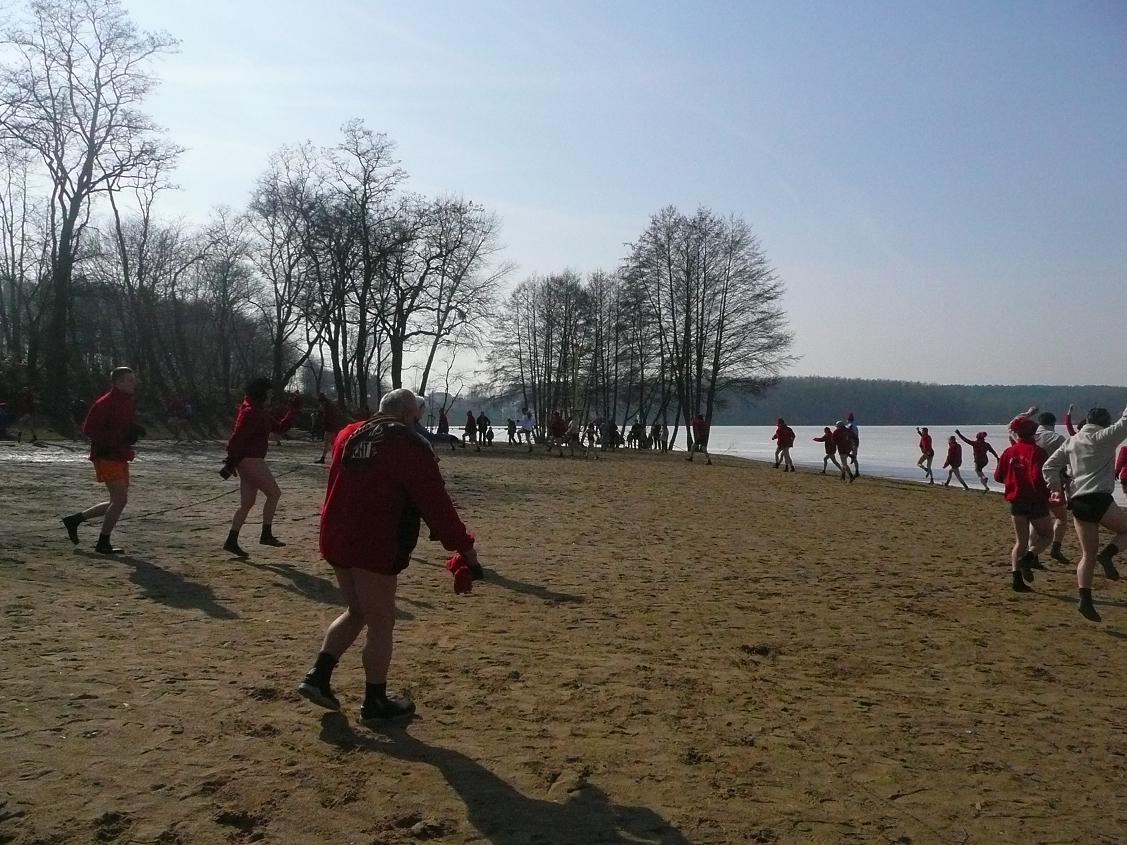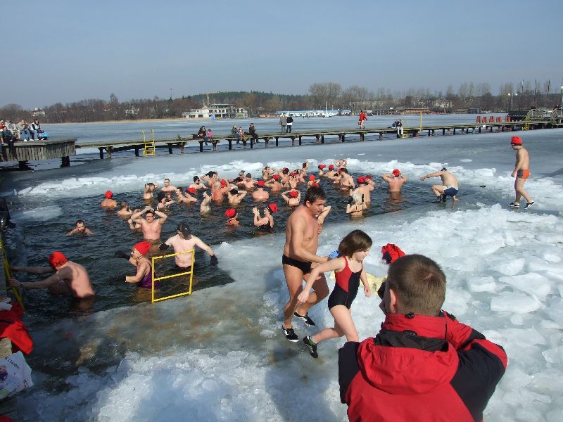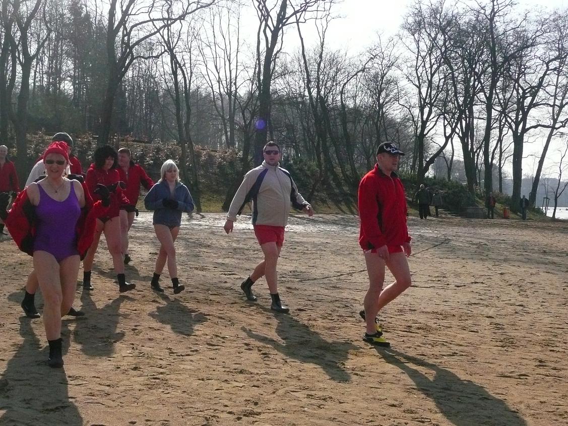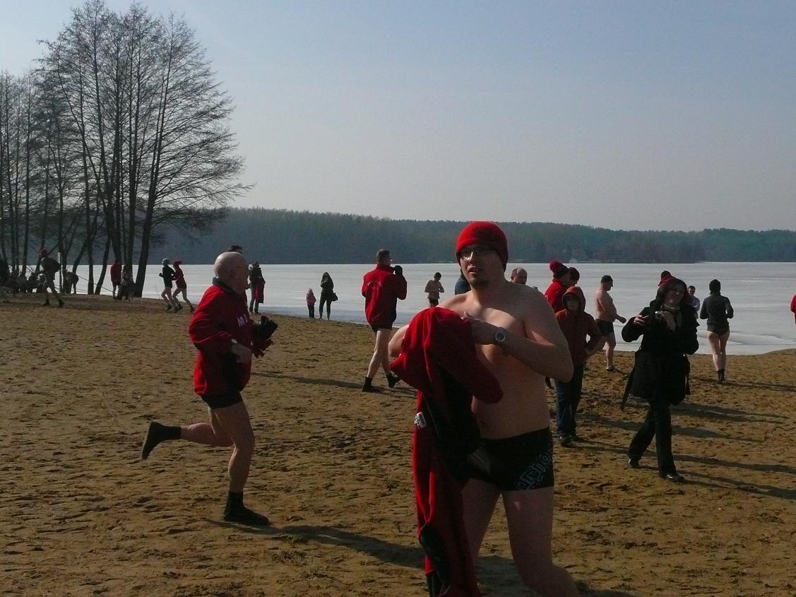 13-03-2011 - 64 osoby krzyczały dzisiaj "Zimo wróć, Zimo wróć", ale Zima zostawiła nam już tylko gruby lód i ciągle zimną wodę :). Na termometrze już 10-12 stopni. Kąpały się