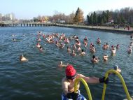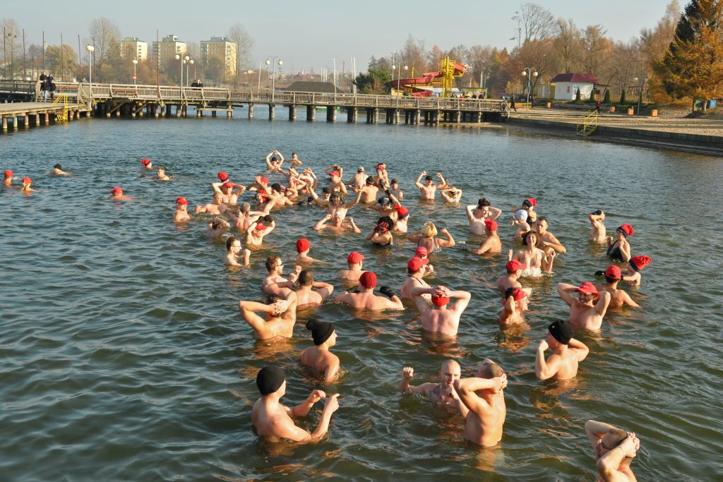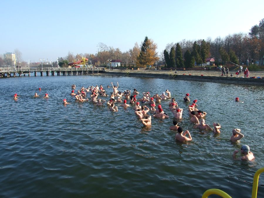 Początek listopada a Zima chyba się nas boi bo ciągle ciepło i ciepło, a lodu nie widać. W taki piękny dzień temp. wody 8 stopni, a nas było 80 osób.