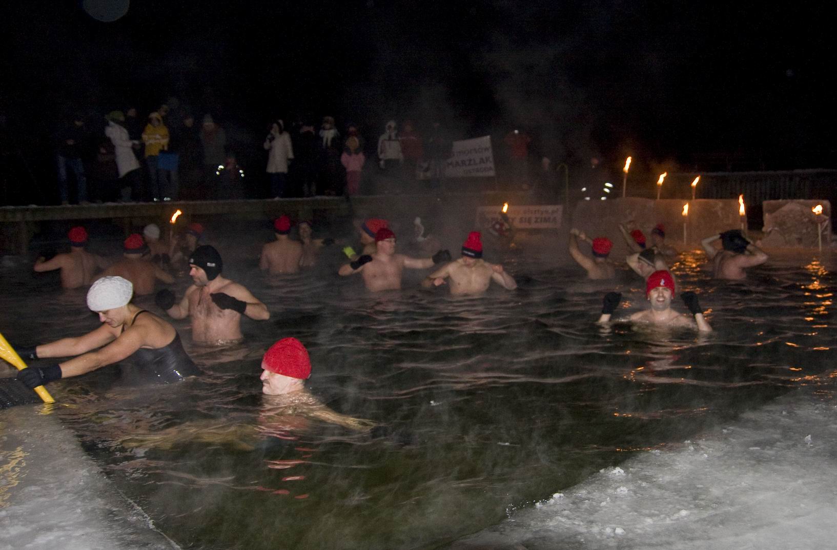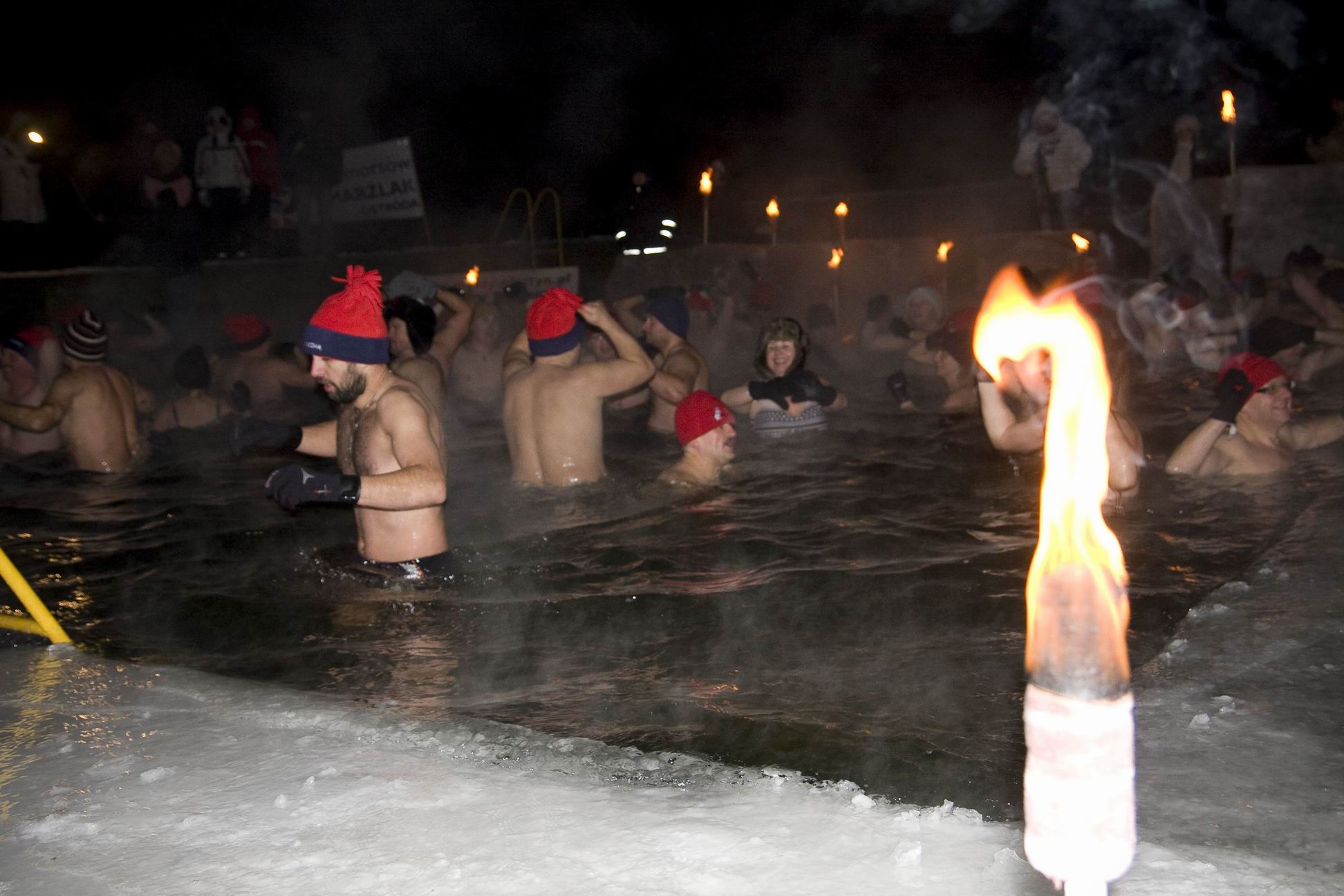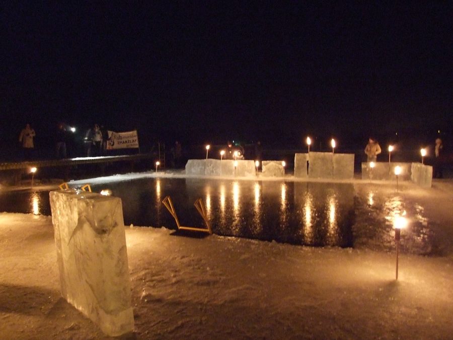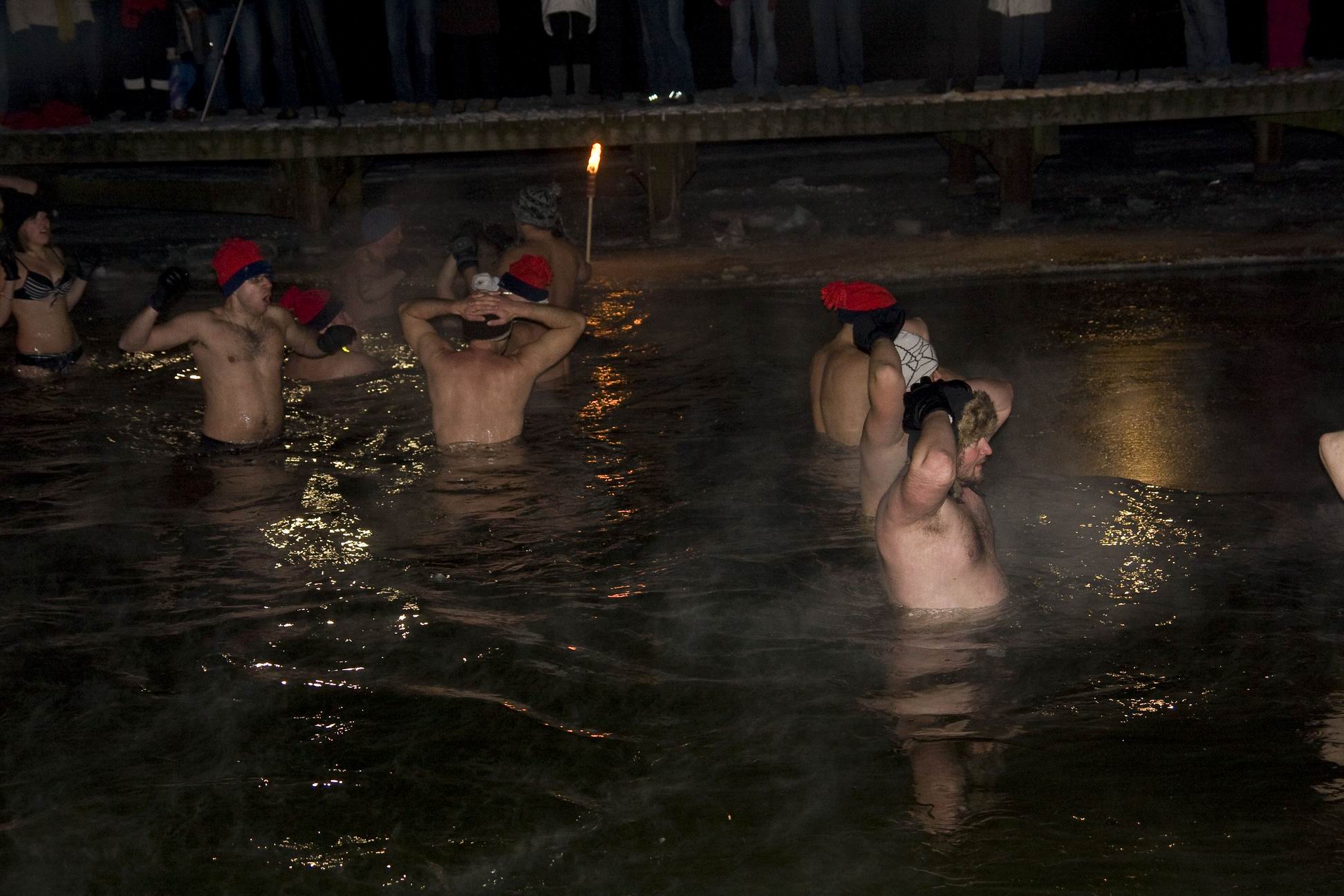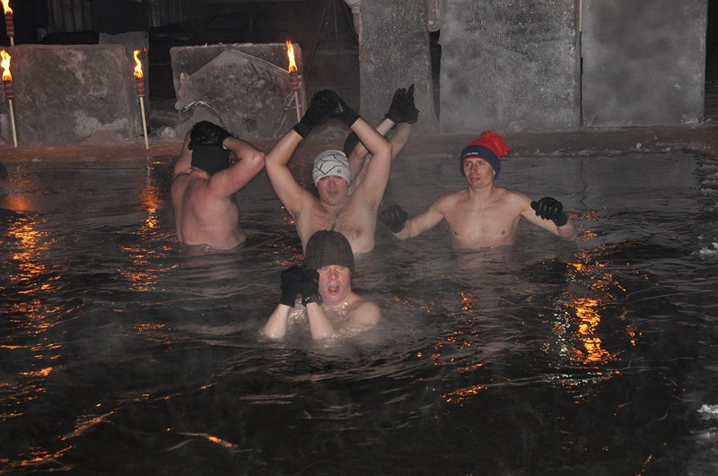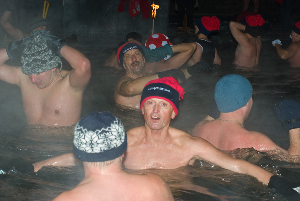 To tygrysy lubią najbardziej !!! Nocna kąpiel dla odważnych i żądnych wrażeń. Było nas ponad 50 osób, wszystko oświetlone pochodniami, klimat niepowtarzalny, .. a temperatura?? Coś około -20 :).
