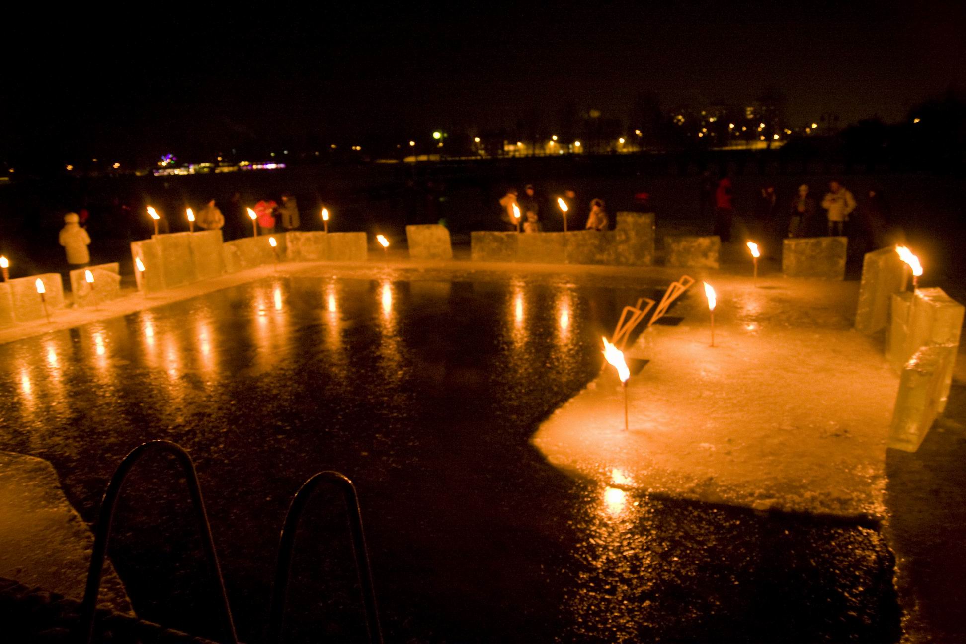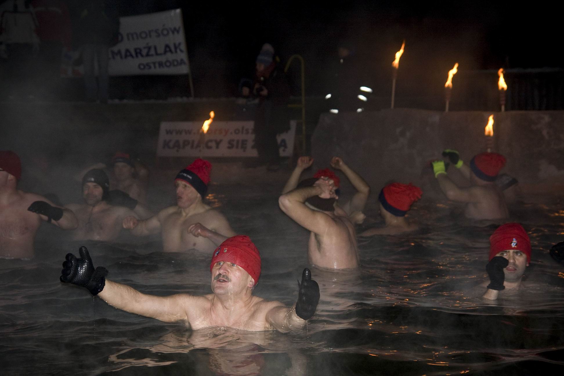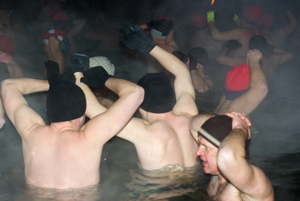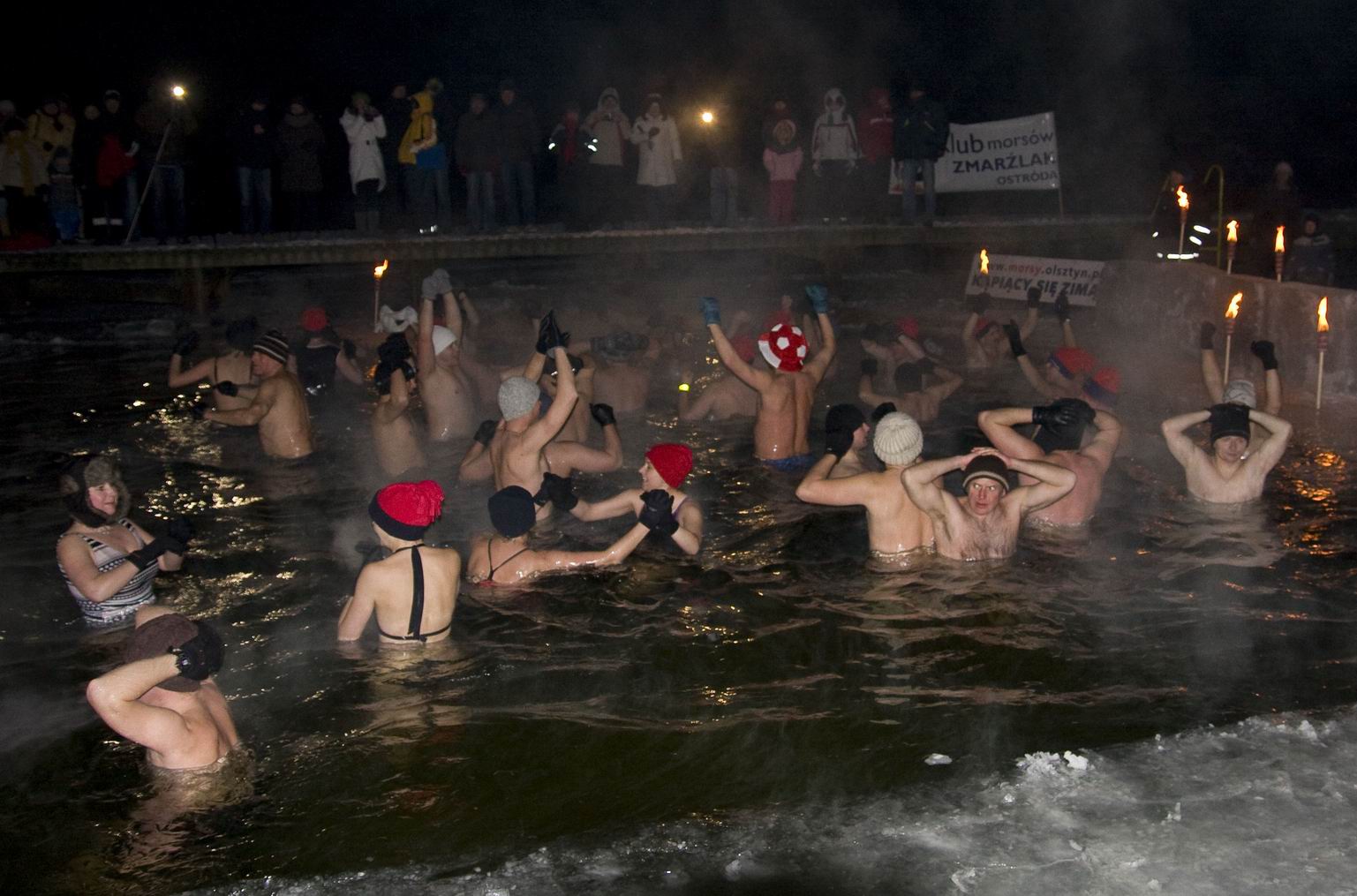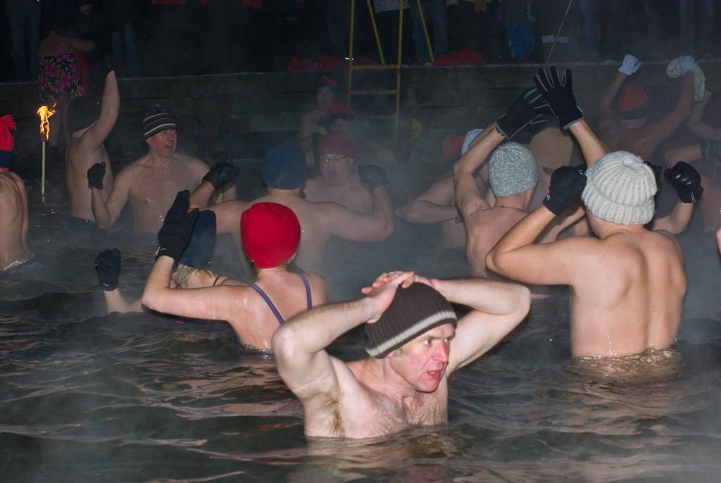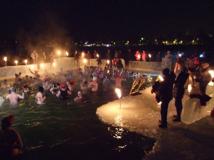 To tygrysy lubią najbardziej !!! Nocna kąpiel dla odważnych i żądnych wrażeń. Było nas ponad 50 osób, wszystko oświetlone pochodniami, klimat niepowtarzalny, .. a temperatura?? Coś około -20 :).