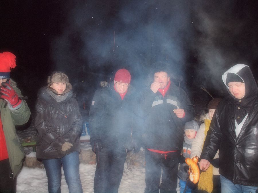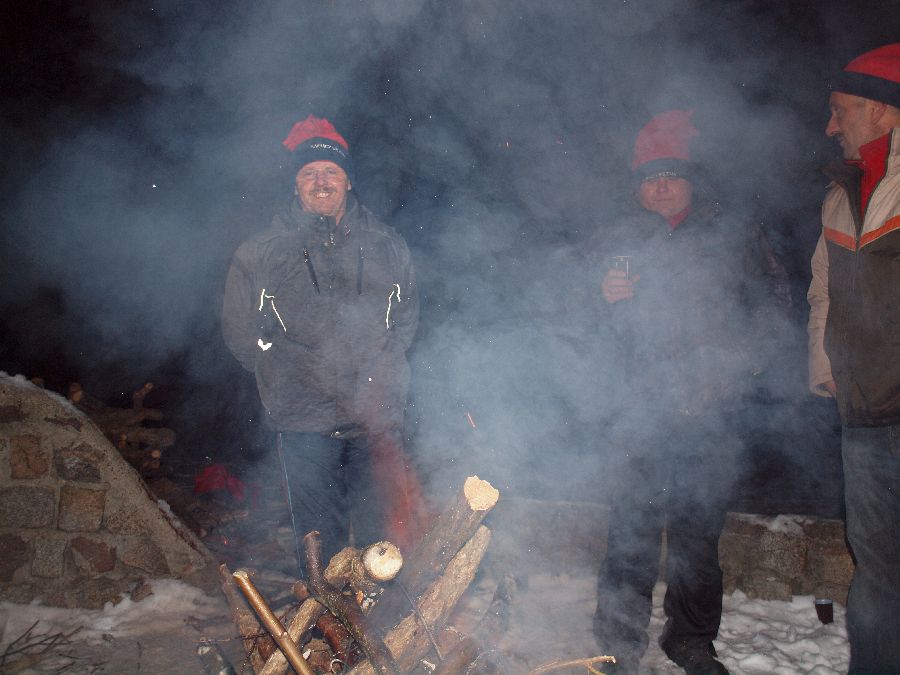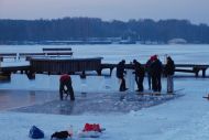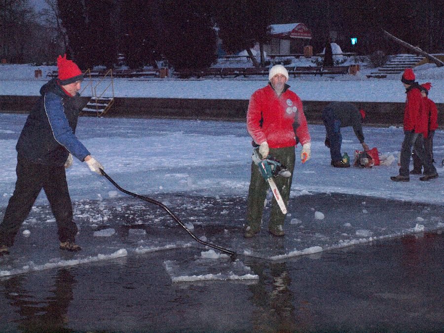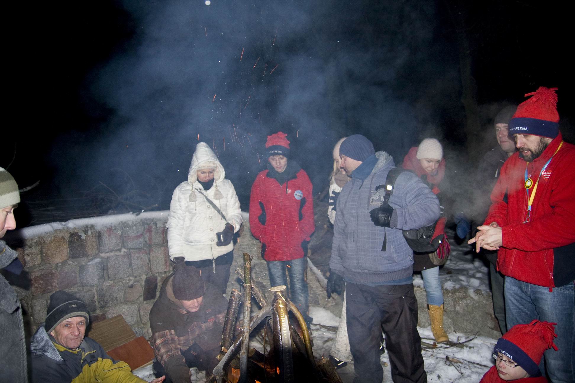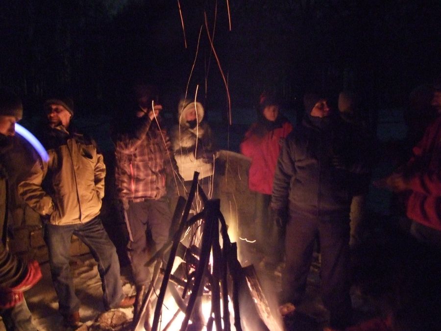 Wycięcie przerębla wymagało dużo czasu i wysiłku. Po kąpieli było ognisko połączone z pieczeniem kiełbasek.