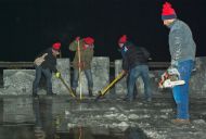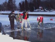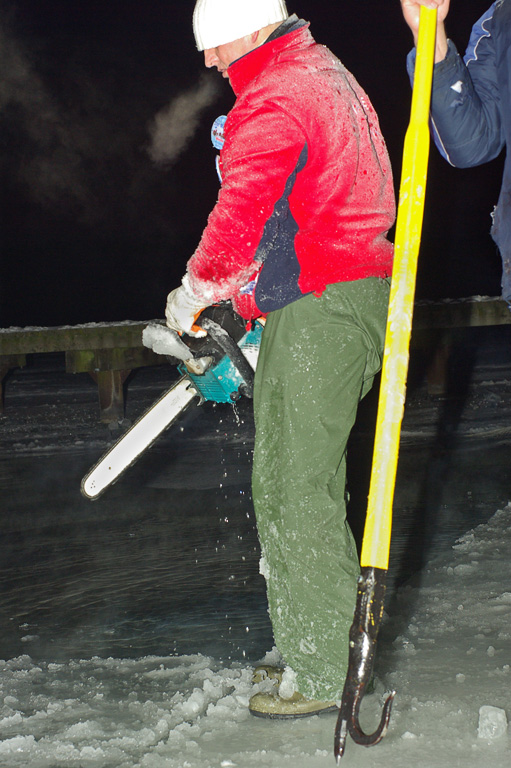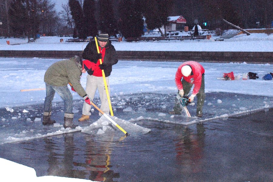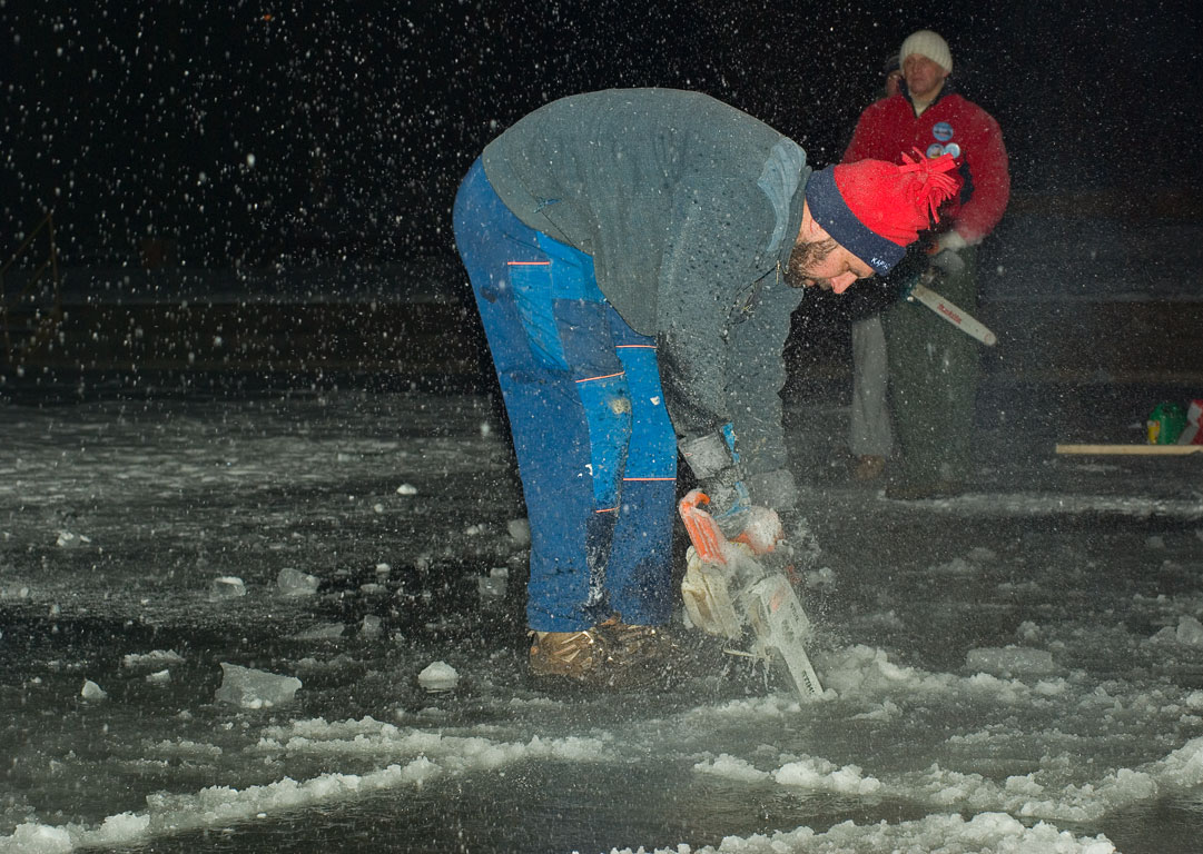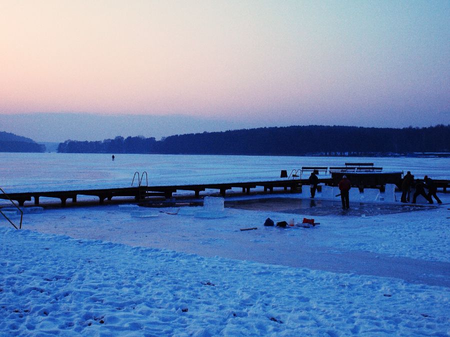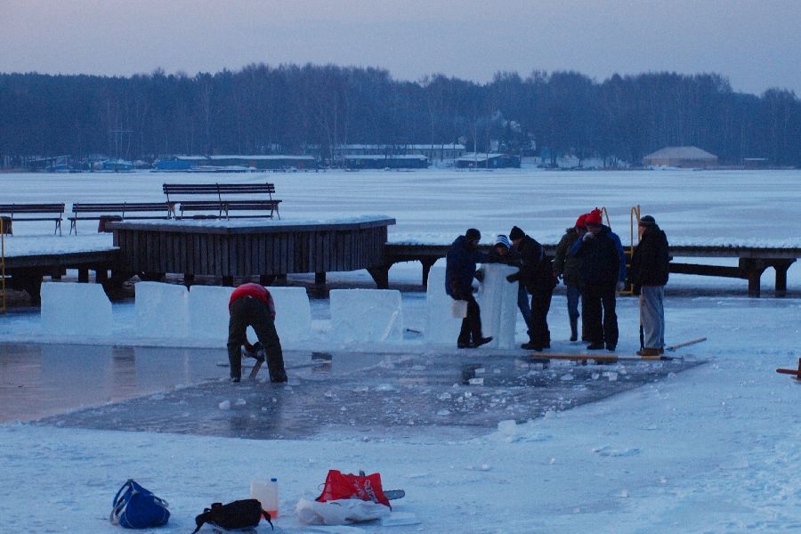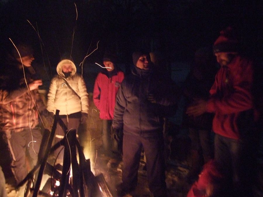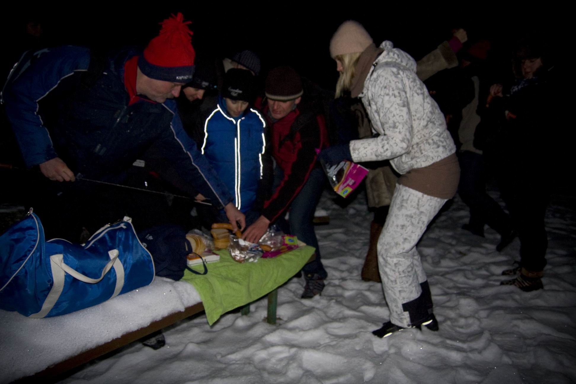 Wycięcie przerębla wymagało dużo czasu i wysiłku. Po kąpieli było ognisko połączone z pieczeniem kiełbasek.