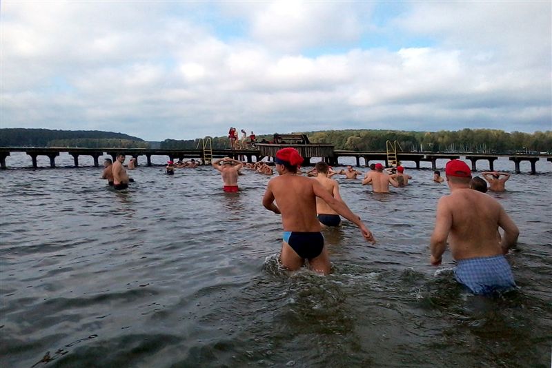 Rozpoczęliśmy sezon 2012/2013. 60 spragnionych Morsów oddało się wspólnej kąpieli. Temperatura powietrza 10 stopni.