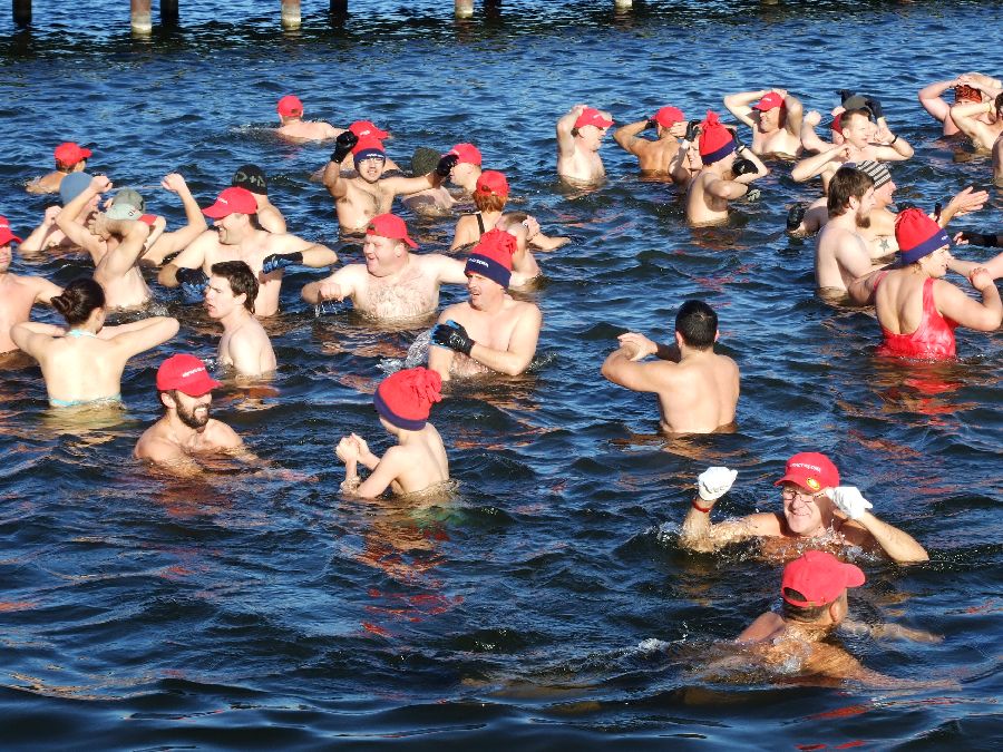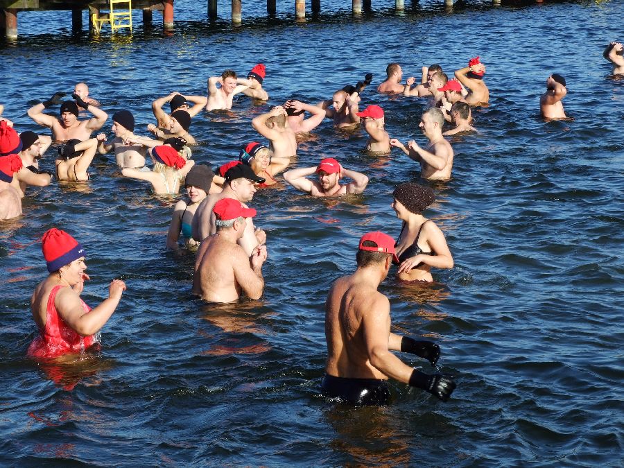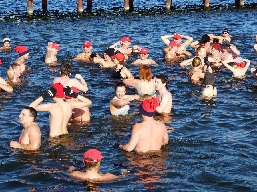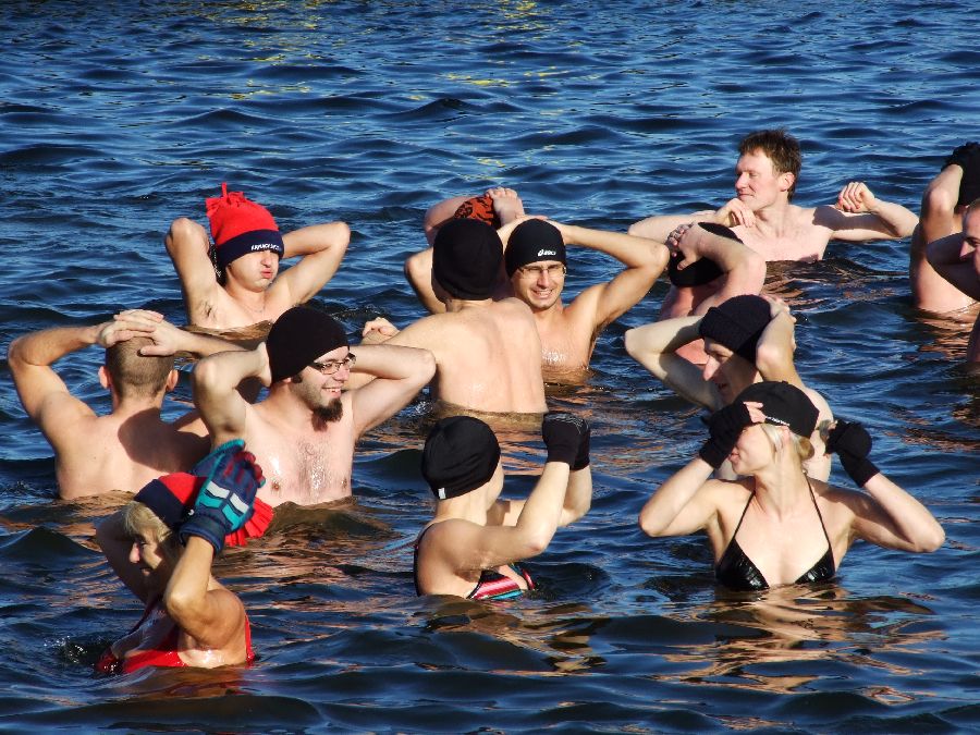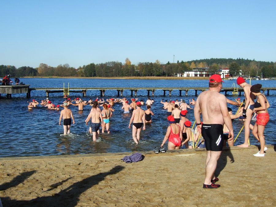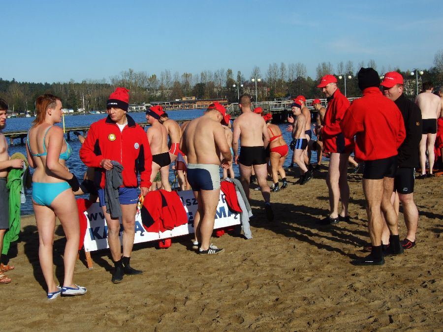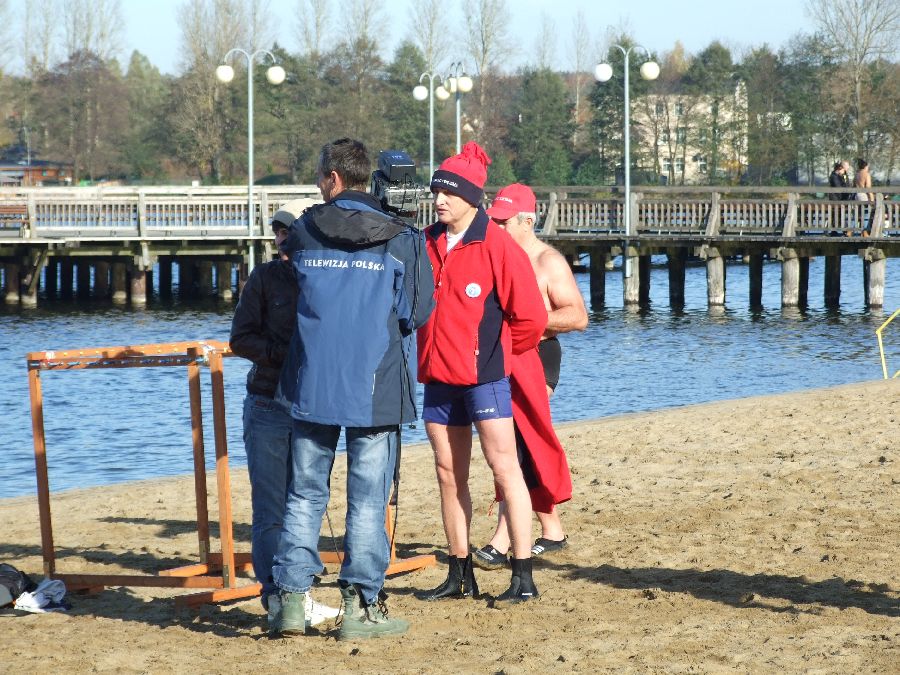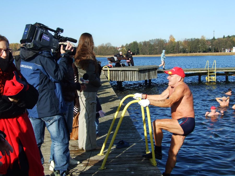Pogoda wyśmienita, lekki mróz no i bardzo dużo nowych twarzy i jeszcze gościła u nas telewizja olsztyńska. Kapiących się - 96 osób - rekord w tym sezonie.