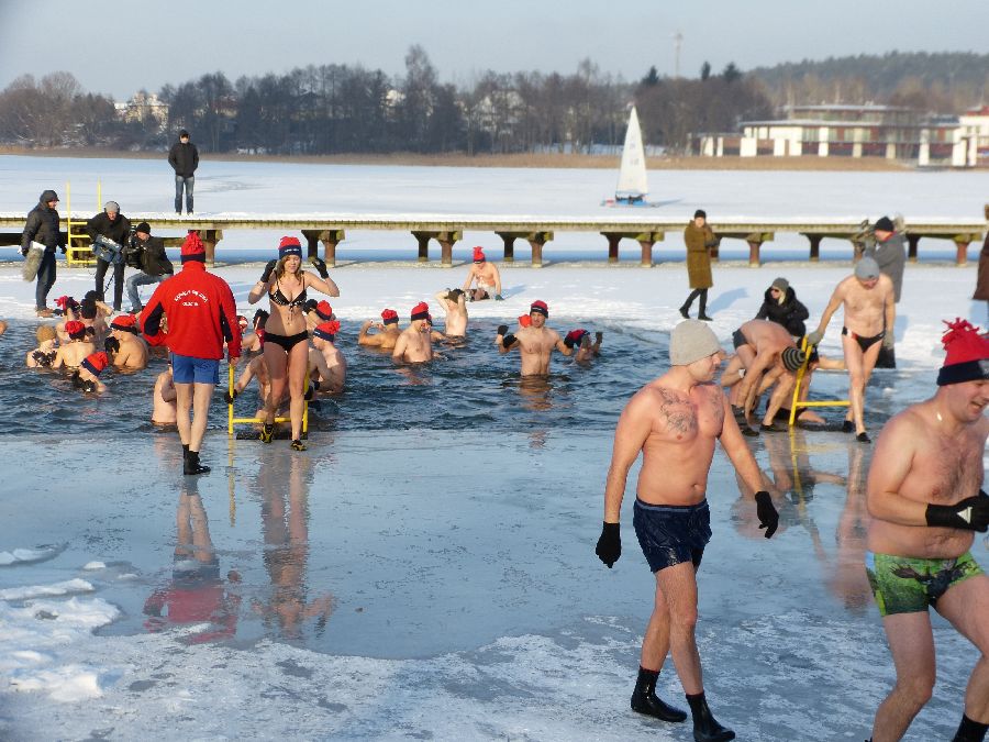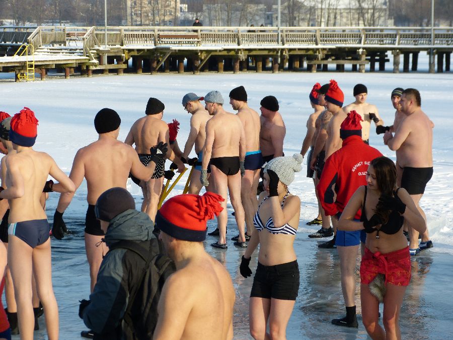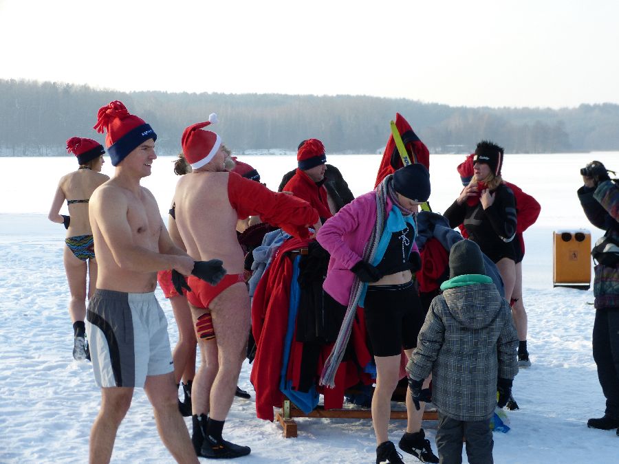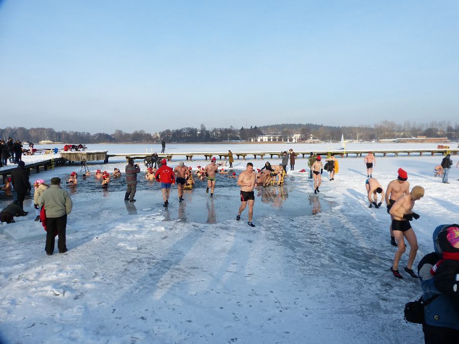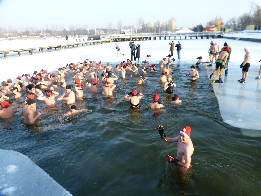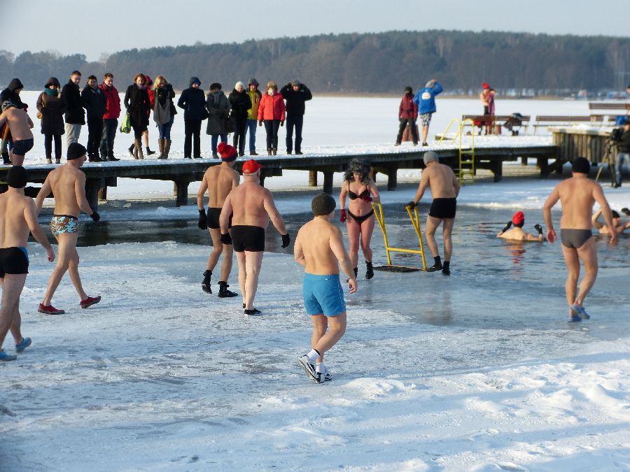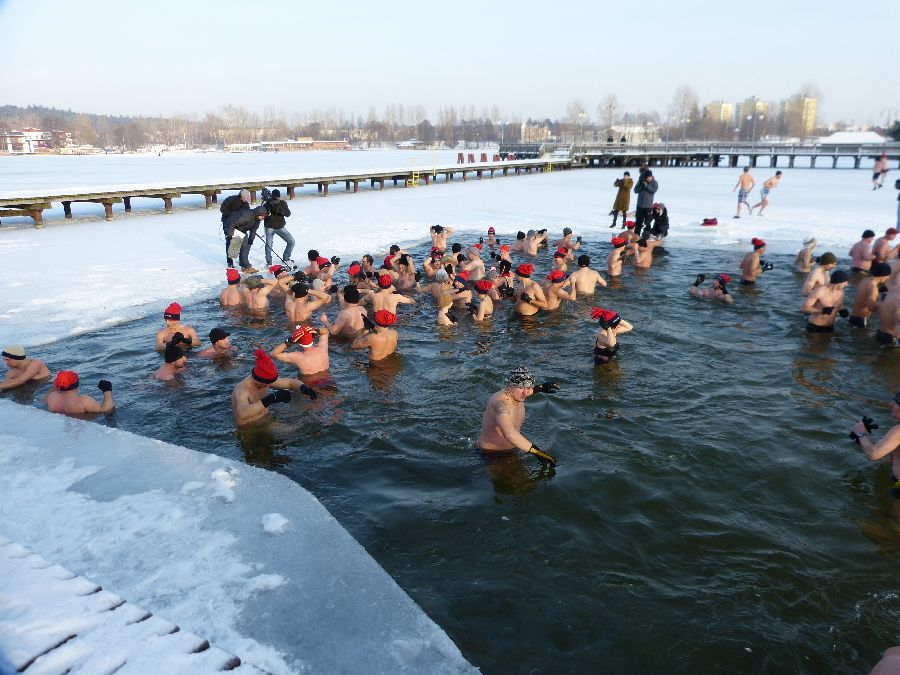 W końcu tak jak lubimy -12 stopni, po obfitej rozgrzewce morsy plusk do wody dając upust swoim
