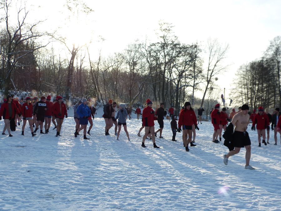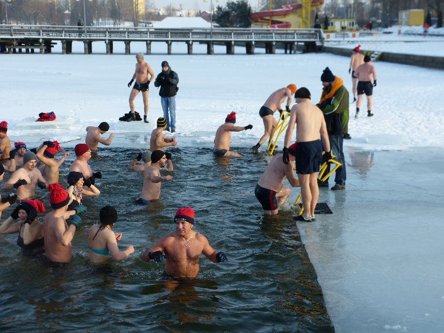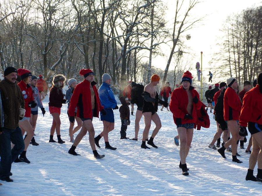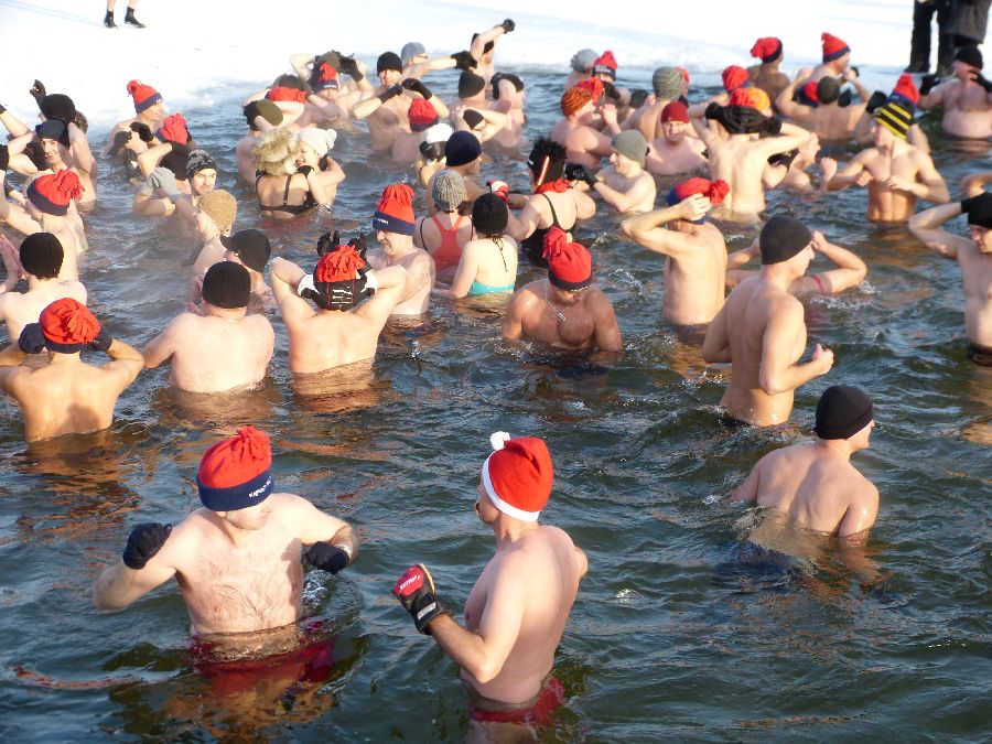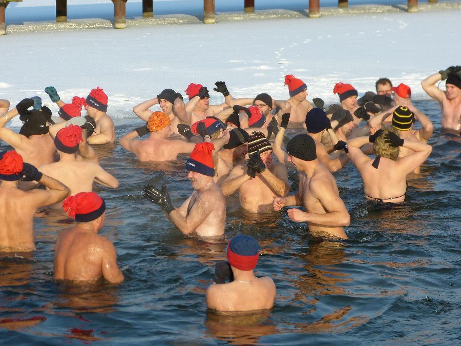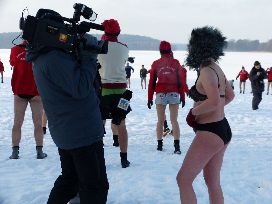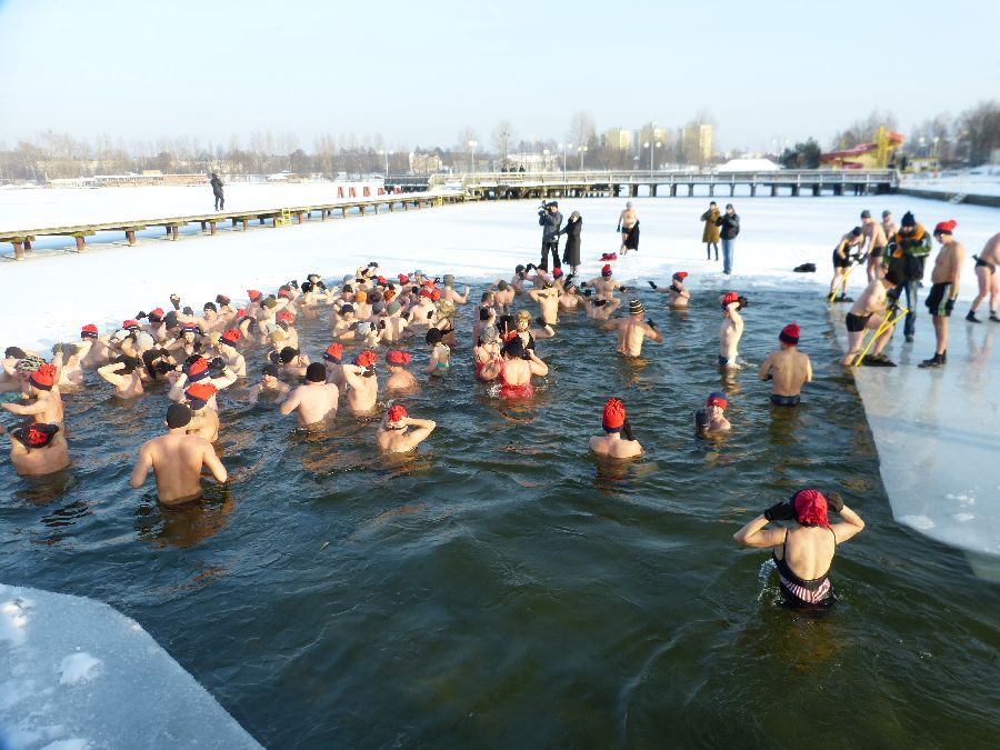 W końcu tak jak lubimy -12 stopni, po obfitej rozgrzewce morsy plusk do wody dając upust swoim