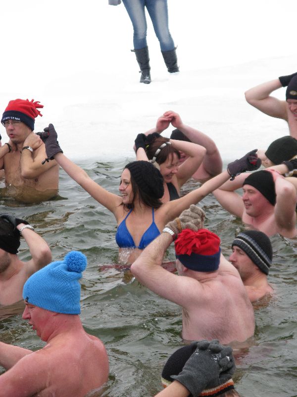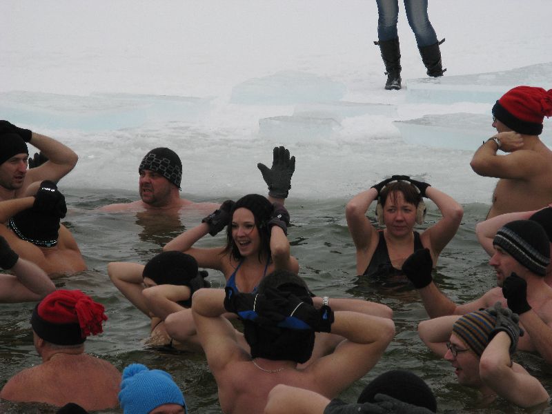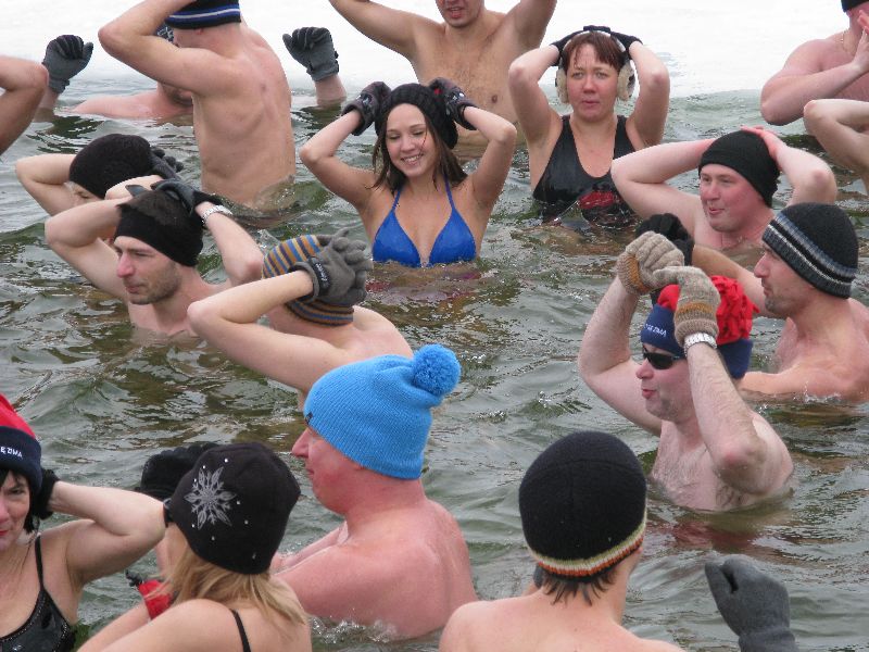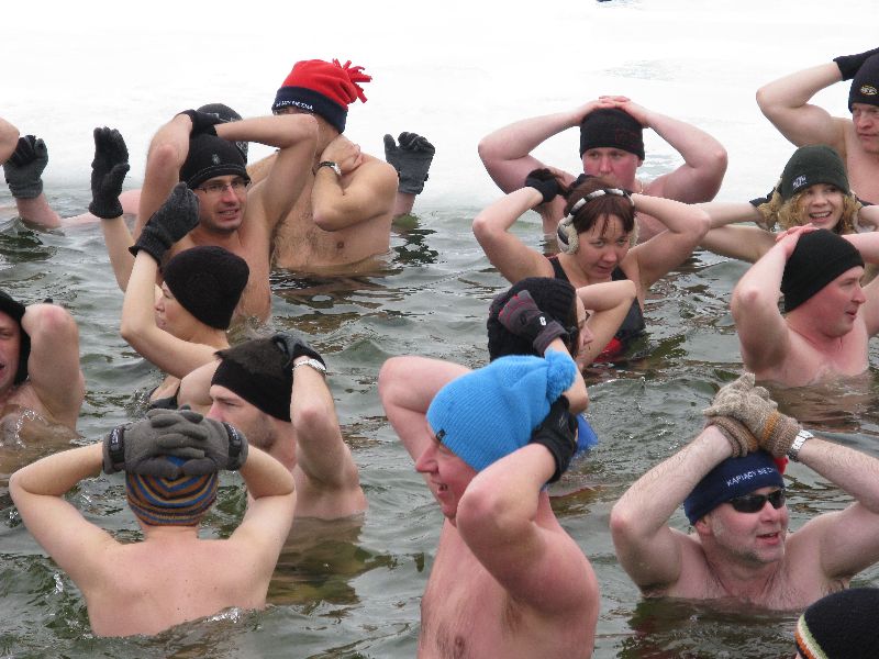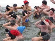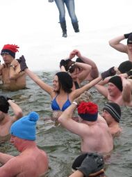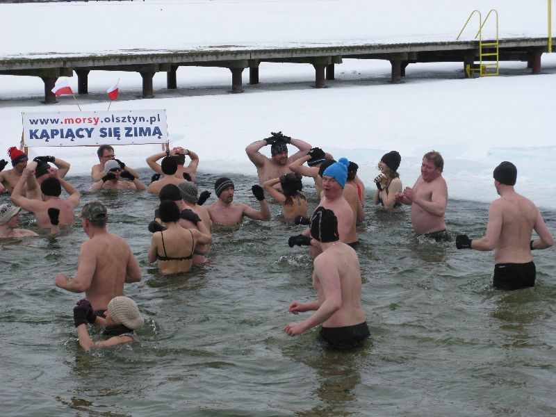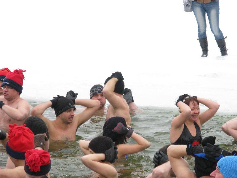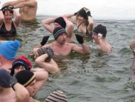 Nasza ostatnia kąpiel na Plaży Miejskiej przed jej modernizacją za to wciąż w zimowym klimacie. Kąpiących się 106 osób.