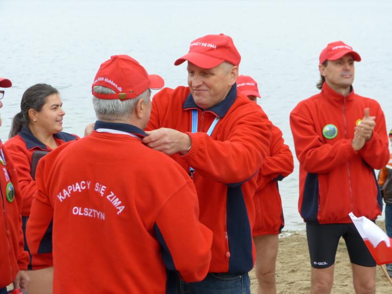 udzielanie wywiadów oraz wręczanie medali i dyplomów - między innymi naszemu koledze Alfredowi Rymarowiczowi za 15-lecie w zimowych kąpielach.