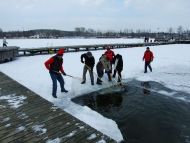 05-12-2010 - I zaczęło się !!!! Piłowanie lodu, aż wióry lecą ... :), lód ma już 10 cm, temperatura -9, a kąpiących się ponad 80 osób. To się nazywa grupowe hartowanie ciała i ducha :).