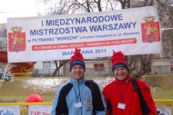 01-04-2011 - Startowaliśmy w I międzynarodowych Mistrzostwach Warszawy w Pływaniu Morsów Pływanie w Zimnej Wodzie. Płyneliśmy w kategorii 36m stylem dowolnym. W grupie wiekowej B do lat 40 zajęliśmy: IV miejsce Wojtek Koperski, V miejsce Adam Kułakowski.