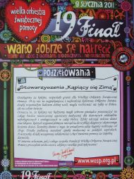 13-04-2011 - Dnia 13.04.11 w ratuszu odbyło się uroczyste podsumowanie XIX Finału Wielkiej Orkiestry Świątecznej Pomocy w naszym mieście. Wiceprezydent Olsztyna Halina Zaborowska-Boruch wręczyła podziękowania również naszej delegacji - Barbarze Sorczyńskiej-Szpajzer i Piotrowi Wichowskiemu.