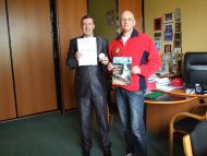 Dnia 01.10.2012r. przedstawiciele Stowarzyszenia "Kąpiący się Zimą", spotkali się z dyrektorem OSiR Jerzym Litwińskim i jego zastępcą Mirosławem Jabłońskim. Prezes Stowarzyszenia Janusz Moszczyński i Piotr Wichowski wręczyli podziękowania i pamiątkową statuetkę, dziękując za dotychczasowe wsparcie i licząc na dalszą współpracę.