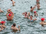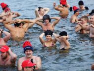 Nasza ostatnia kąpiel na Plaży Miejskiej przed jej modernizacją za to wciąż w zimowym klimacie. Kąpiących się 106 osób.